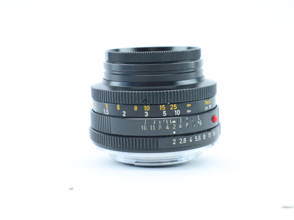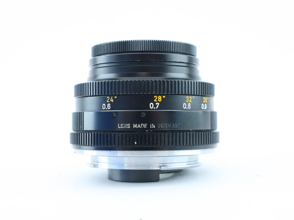With its versatile focal length and beautiful bokeh, the Summicron-R 50mm f/2 is ideal for portraits, street photography, and general-purpose shooting. This version was made in Germany in the early 1970s.