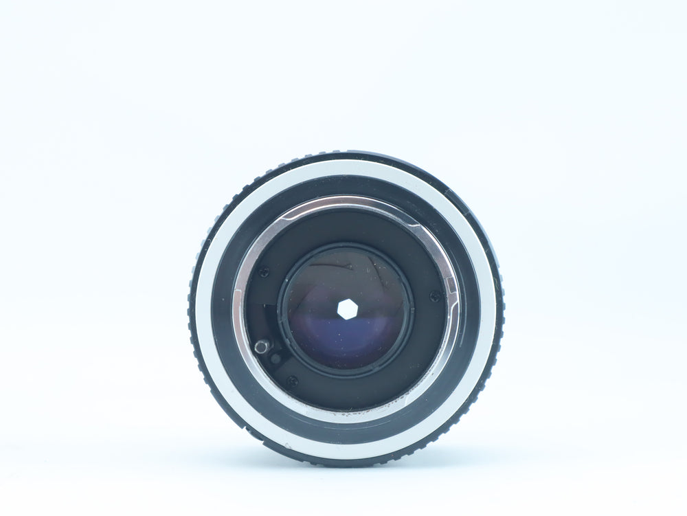The lens has been inspected and shows normal signs of use. Optics are clean with no haze or fungus. Focus and aperture rings operate smoothly.
