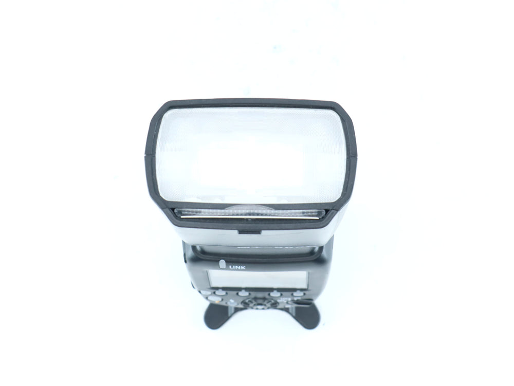 Used – Good condition. Fully functional with clean battery contacts. Flash tube fires reliably. LCD screen and controls in good working order.
