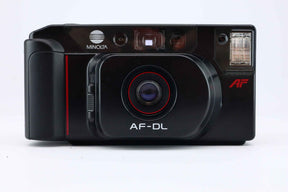 Die Minolta AF-DL sind benutzerfreundliche vollautomatische Kompaktkameras für 35-mm-Filme. Der Ein-/Ausschalter öffnet und schließt die zweiteilige Objektivabdeckung. Ein roter Knopf ermöglicht das Umschalten des Objektivs vom Weitwinkelfokus auf den Standardfokus. Die Kamera verfügt über einen automatischen Filmtransport, einen Autofokus mit Fokushaltefunktion und eine automatische Aktivierung des eingebauten Blitzes.