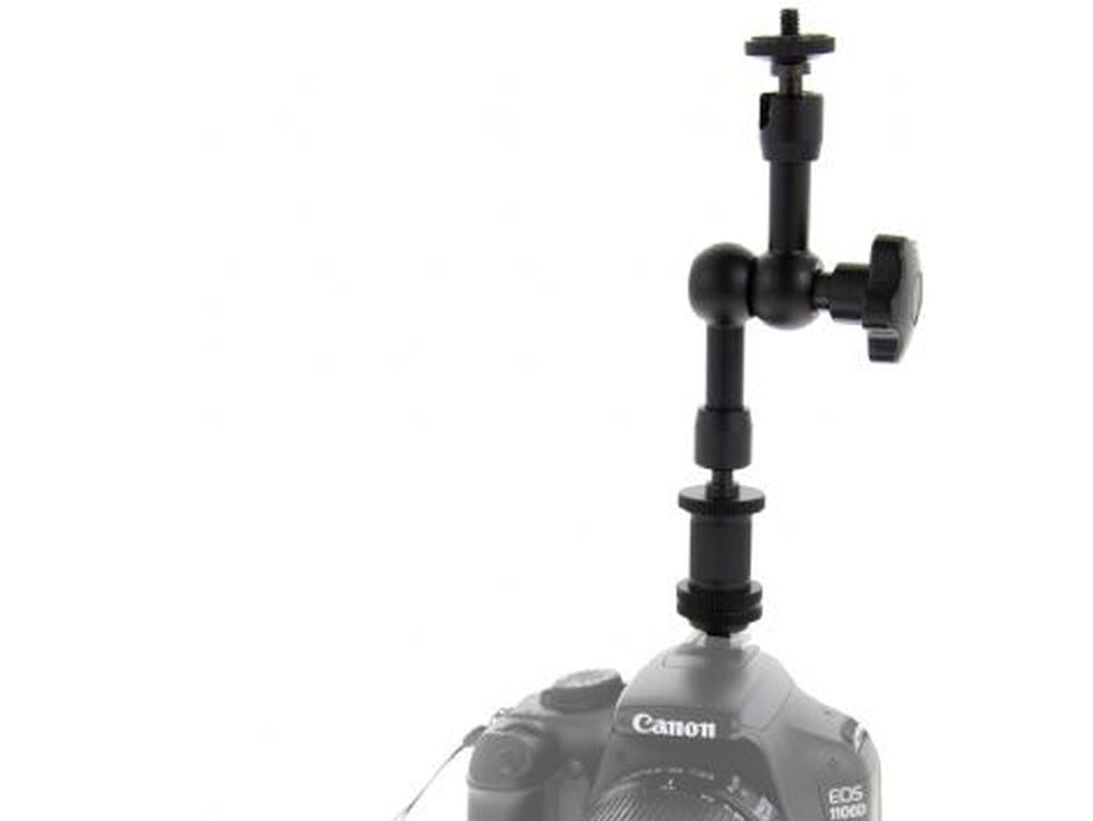 The Falcon Eyes Magic Arm MSW-2A350 is a versatile attachment for your camera, designed to hold a light source on the opposite end. Measuring 190mm in length, it features a 1/4" male thread on top, allowing you to mount additional accessories such as a compact LED lamp.