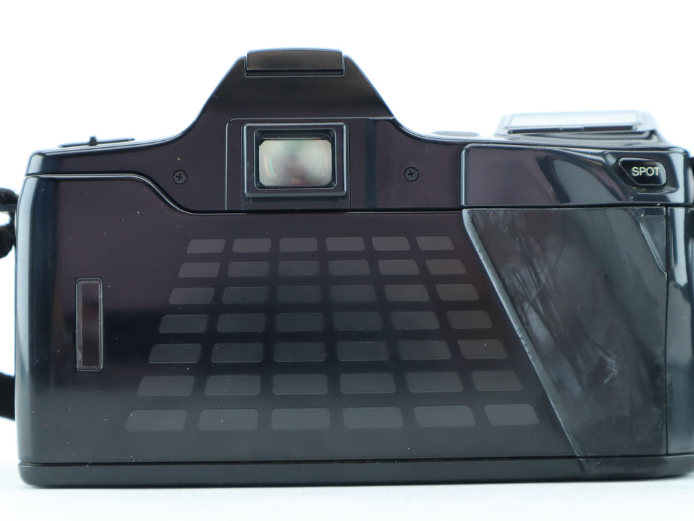 This camera is in good working order. Shutter, film advance, and autofocus all operate correctly. Viewfinder is clean and display is fully legible. The lens is also in good condition, with clean glass and smooth zoom/focus action. The autofocus is responsive. Cosmetically, the camera and lens show light signs of use, such as minor scuffing, but no damage or cracks.