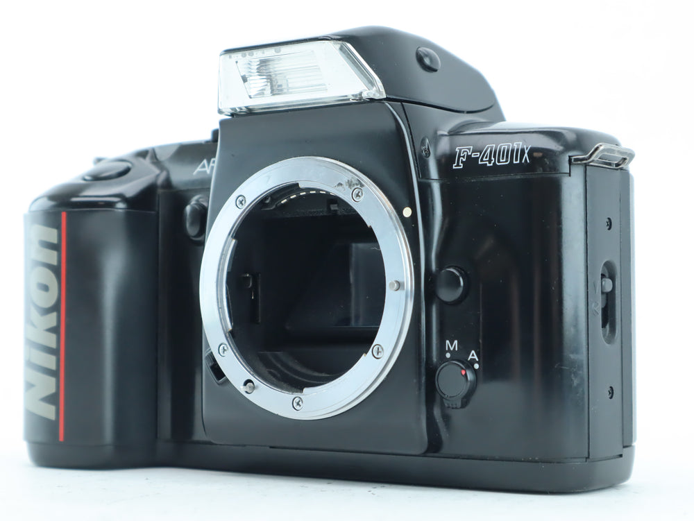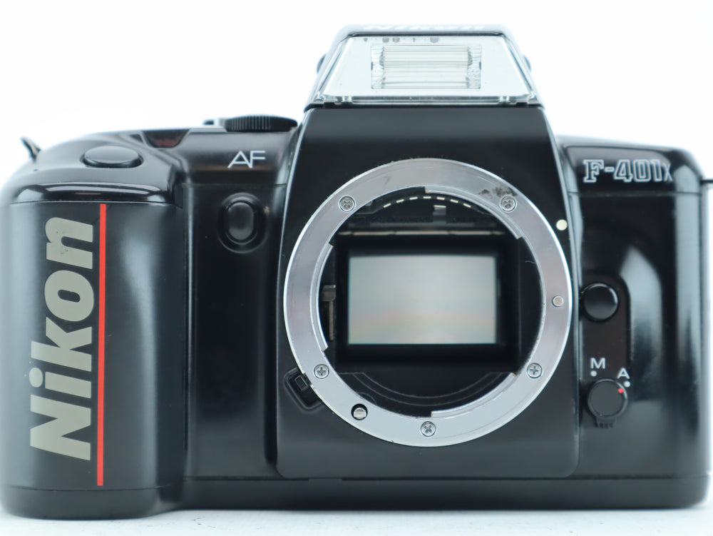 The Nikon F-401X is a beginner-friendly autofocus 35mm film SLR camera featuring full auto exposure, TTL metering, and a built-in pop-up flash. With its solid build and Nikon’s trusted F-mount compatibility, it's a great camera for those starting out in film photography or looking for a reliable, automatic SLR experience.
