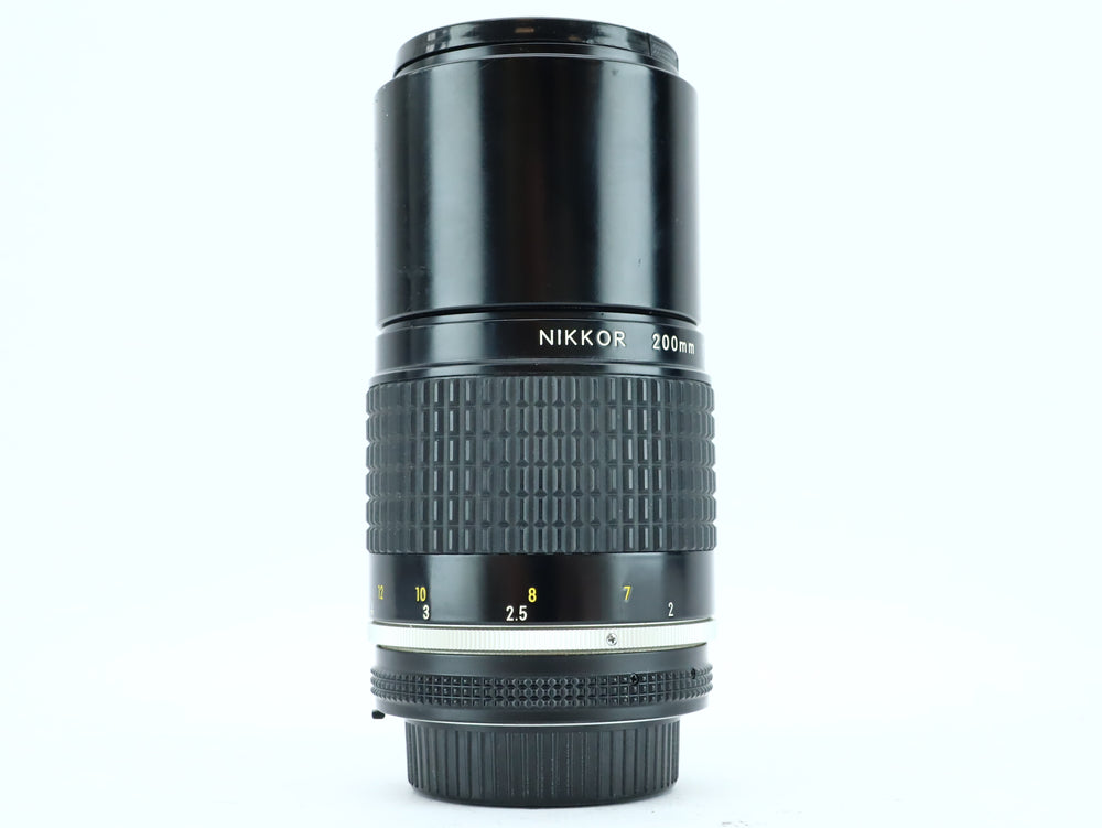 The Nikkor 200mm f/4 is a manual focus telephoto prime lens designed for Nikon F-mount SLR cameras. Compact for its focal length, this lens is well-regarded for its optical clarity, precise manual focus, and all-metal construction. It delivers sharp results even wide open and is a favorite among film photographers and digital shooters using F-mount or adapted mirrorless setups.