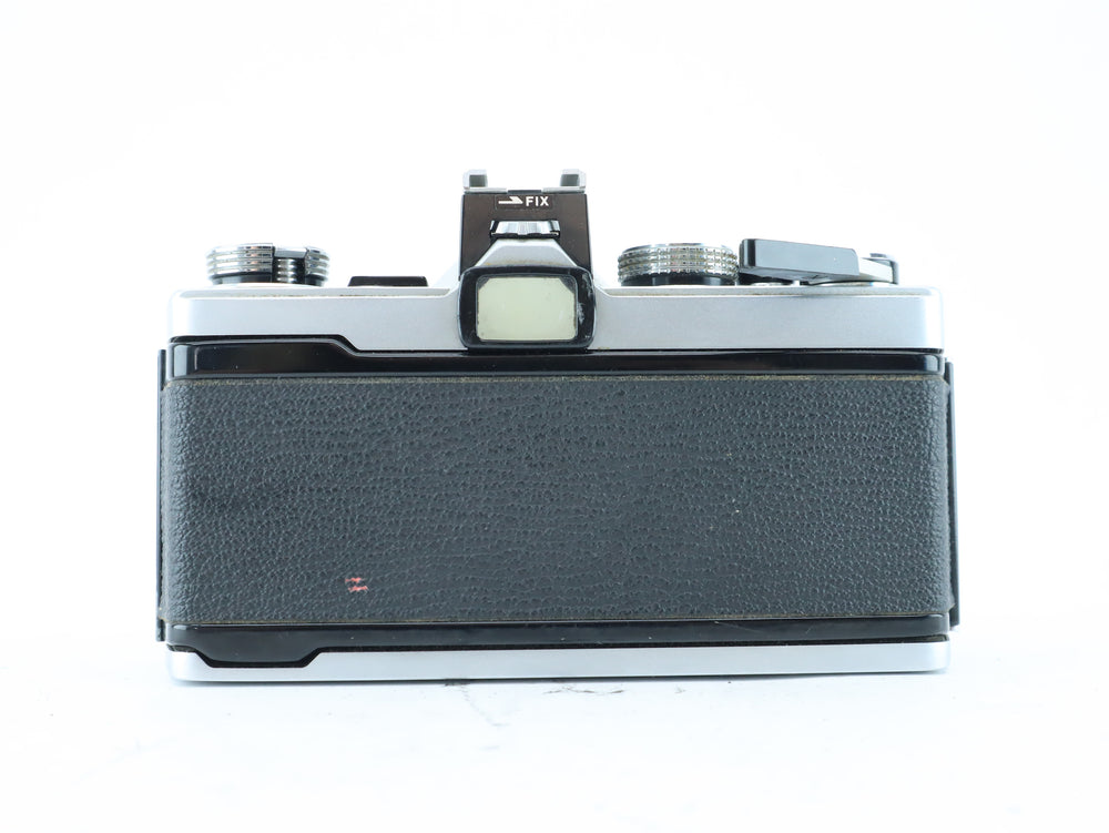 Shutter and film advance work correctly. Light meter responds (if battery installed). Lens glass is clean and clear, with smooth focus and aperture rings.