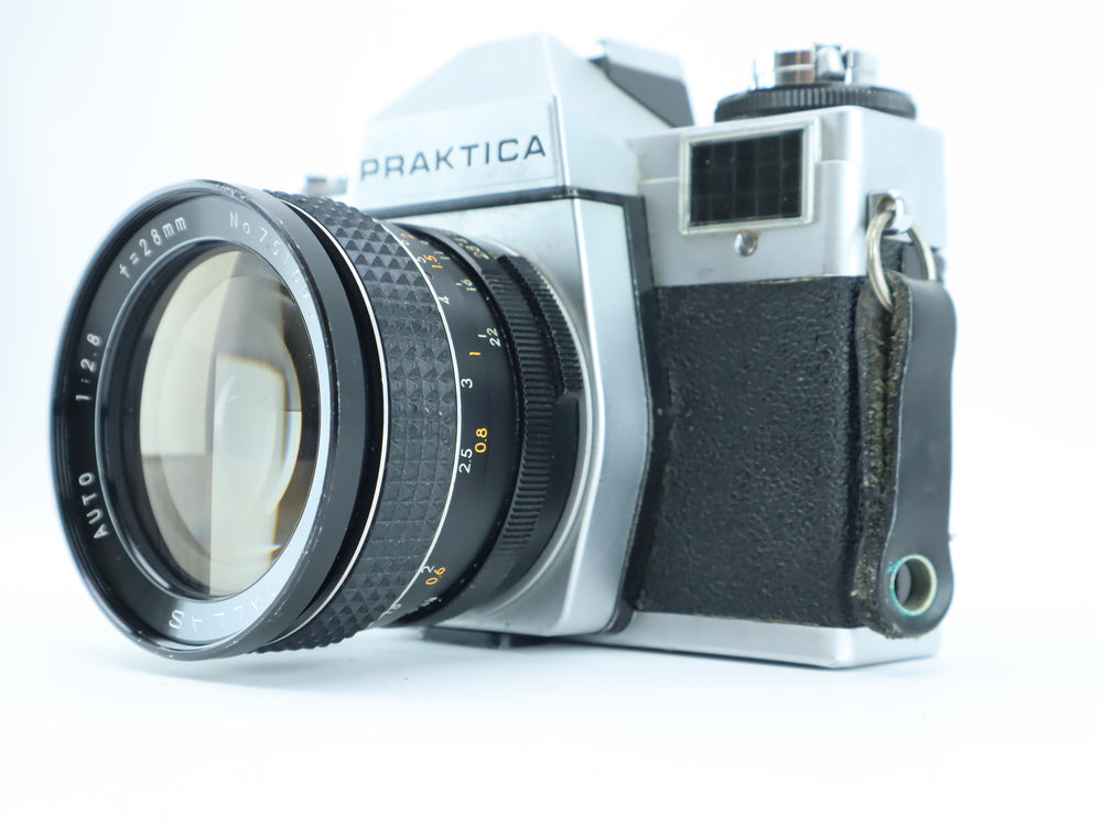 The Praktica LB2 is a vintage 35mm film SLR camera, known for its simplicity and robust design, making it an excellent choice for analog photography enthusiasts. Paired with the Pallas Auto 28mm f/2.8 lens, this setup offers a wide-angle perspective ideal for landscapes, architecture, and environmental portraits.