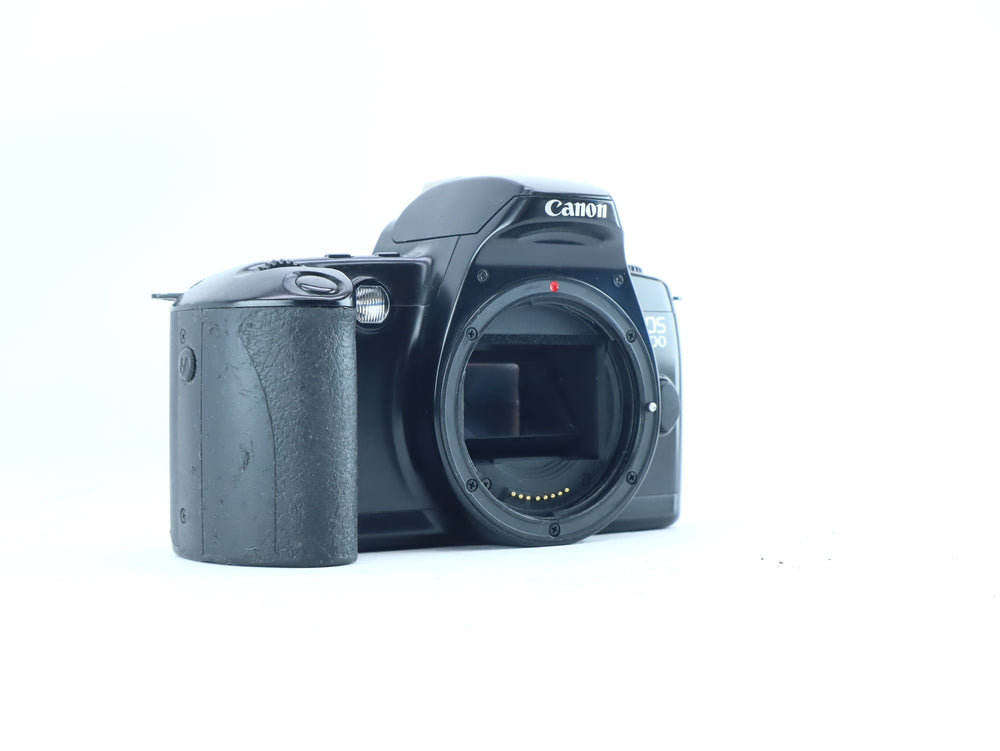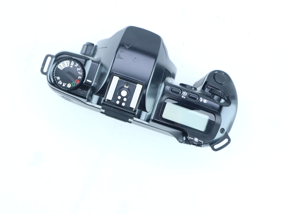 Condition Report Good condition. The Canon camera body (S/N: 5803870) shows normal signs of light use and minor cosmetic surface wear consistent with its history. The shutter is clean and fires accurately across the entire speed range. The autofocus system, built-in flash, and motorized film transport have been fully tested and are in good working order. The battery compartment is clean and the viewfinder is bright.