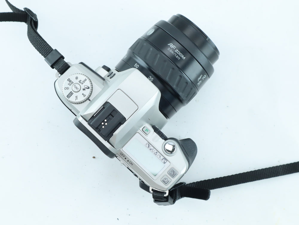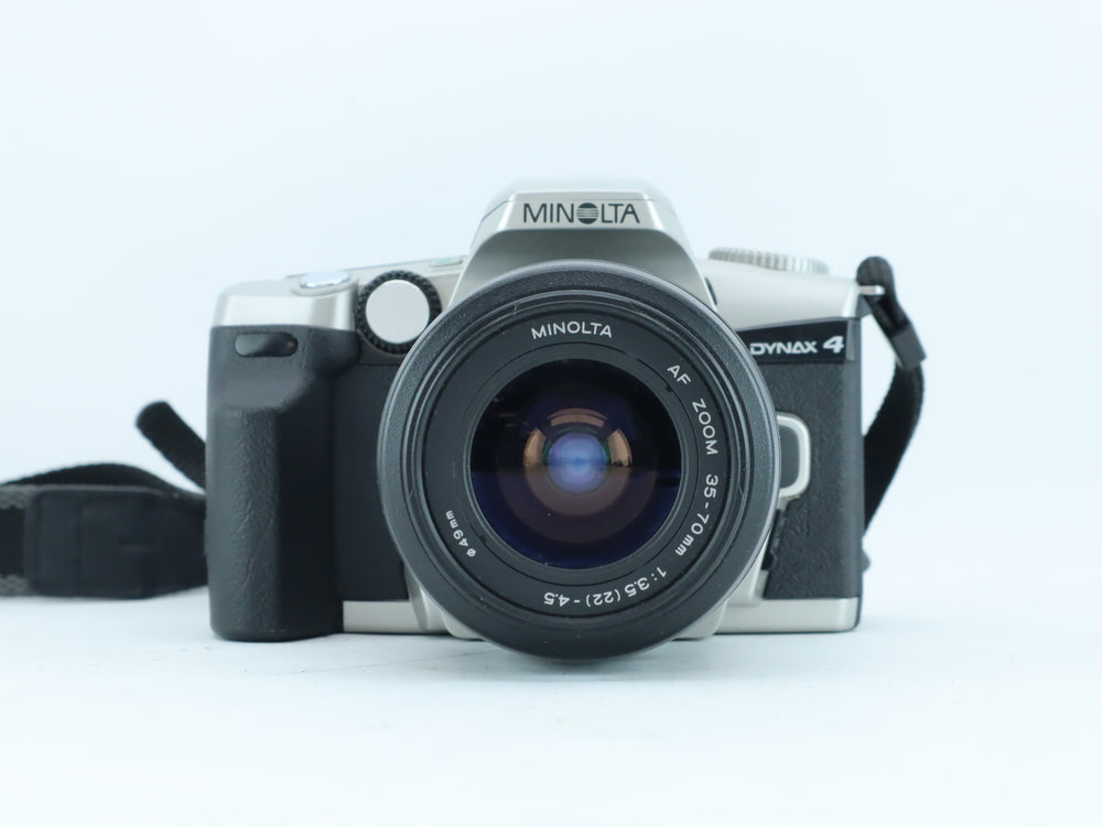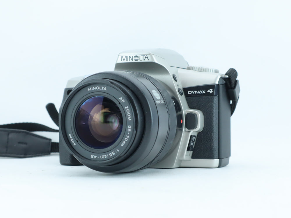 Introductory Paragraph The Minolta Dynax 4 (known as the Maxxum 4 in North America) is the definitive choice for the enthusiast who values high-end SLR performance in one of the smallest and lightest bodies ever produced. Released during the final peak of film technology, it is celebrated for its incredibly fast autofocus and high-speed shutter, packed into a remarkably ergonomic chassis. This unit (S/N: 31312501) comes paired with the Minolta AF 35-70mm f/3.5-4.5lens (S/N: 52508152), providing a versatile zoom range that handles everything from wide-angle landscapes to natural portraits. Because it features a sophisticated 3-point Twin Cross AF sensor and fully automated exposure modes, it serves as an incredibly capable tool for capturing sharp, well-exposed images with minimal effort. Whether you are a beginner looking for a "point-and-shoot" SLR experience or a seasoned photographer wanting a lightweight backup, this Minoltaprovides the optical brilliance and modern convenience of the final analog era.