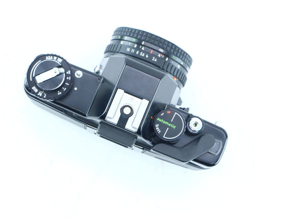 Introductory Paragraph The Praktica B 100 is the definitive choice for the enthusiast who values the heritage of East German optics but desires the convenience of modern electronic automation. This specific unit is a standout because it features the 50mm f/2.4 "pancake" lens, which is highly sought after by street photographers for its slim profile and razor-sharp performance. The Praktica systems are famous for their ruggedness, and the B-series refined that reputation with a more compact and elegant body that handles like a professional Western contemporary. Because it utilizes an electronic exposure system, it serves as an incredibly capable tool for capturing fleeting moments without the need for manual calculation. Whether you are documenting urban architecture or soft-lit portraits, this B 100 provides the optical brilliance and mechanical heritage that made Pentacon a global household name.