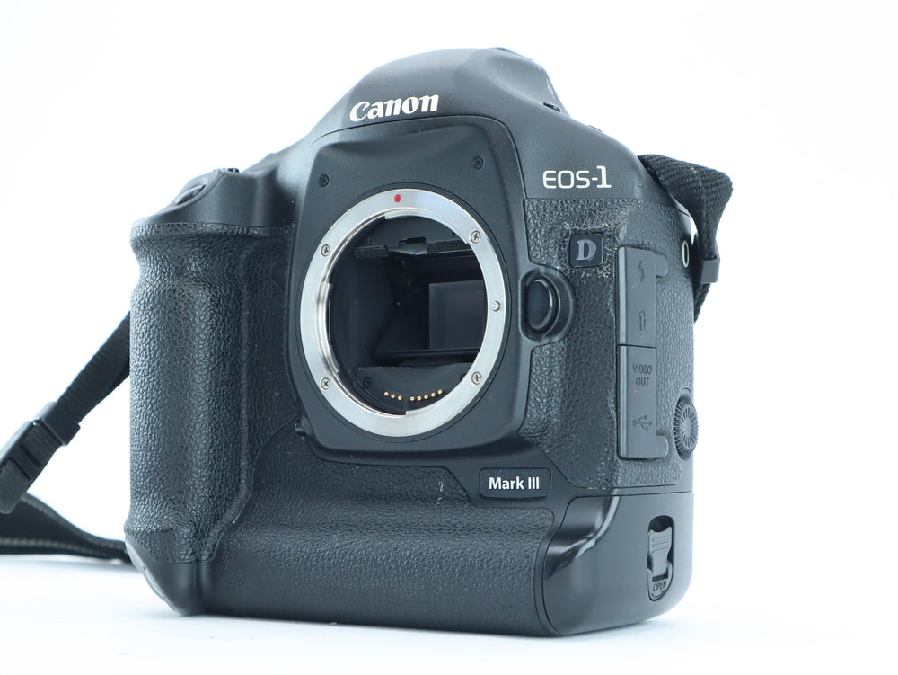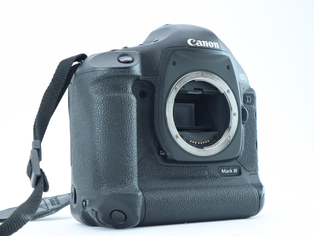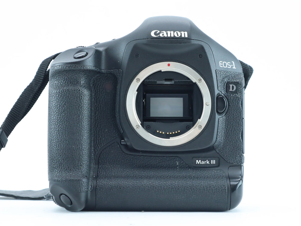 The Canon EOS-1D Mark III is a high-speed professional DSLR, built for action, sports, and reportage photography. It features a 10.1 MP APS-H CMOS sensor, dual DIGIC III processors, and a blazing-fast 10 fps continuous shooting speed, all housed in a rugged, weather-sealed magnesium alloy body. This camera delivers top performance and reliability in the most demanding shooting environments.