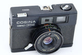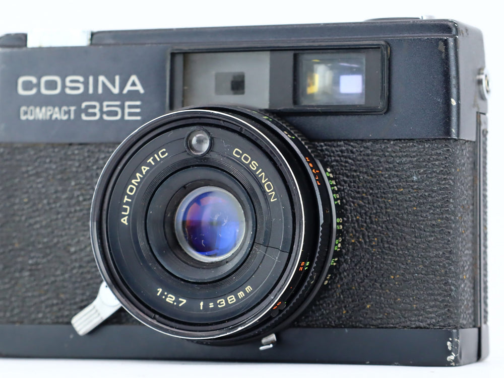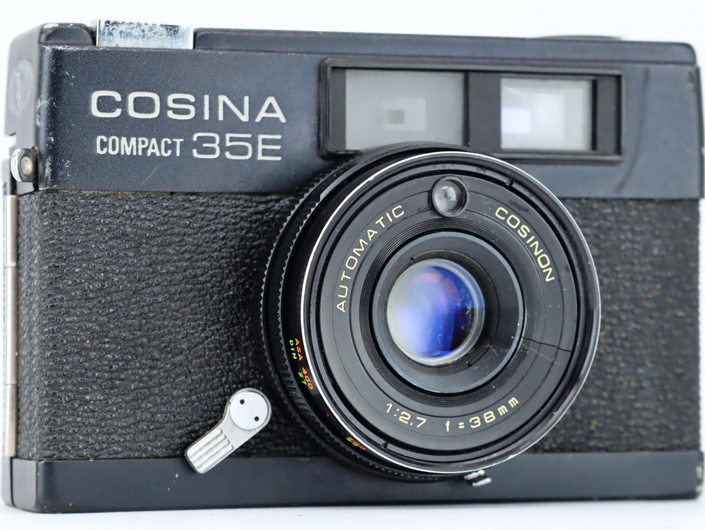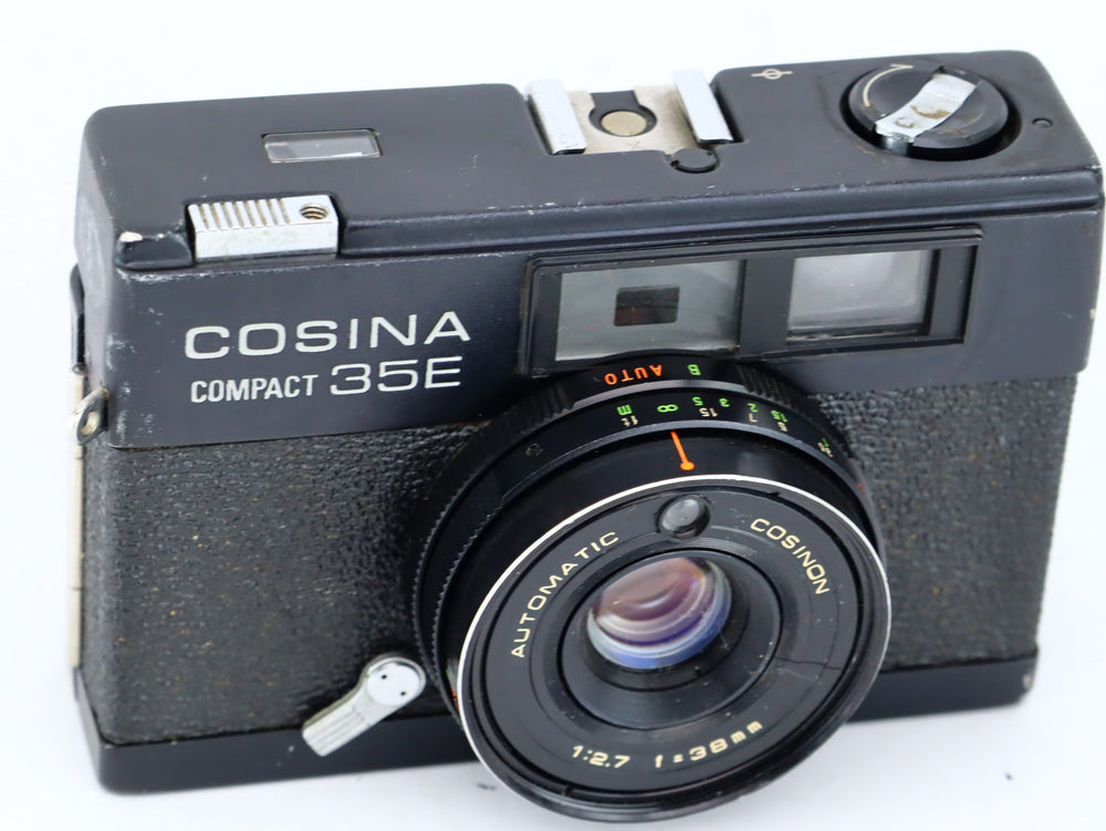 Die Cosina Compact 35e wurde in den 70er Jahren auf den Markt gebracht. Das Design basierte auf dem Konica C35, einem damals sehr beliebten Entfernungsmesser. Die Kamera ist mit einem 38-mm-1:2,7-Automatik-Cosina-Objektiv ausgestattet. Der Sucher verfügt über einen integrierten Lichtmesser, um zu sehen, ob Ihre Aufnahmen gut belichtet sind.