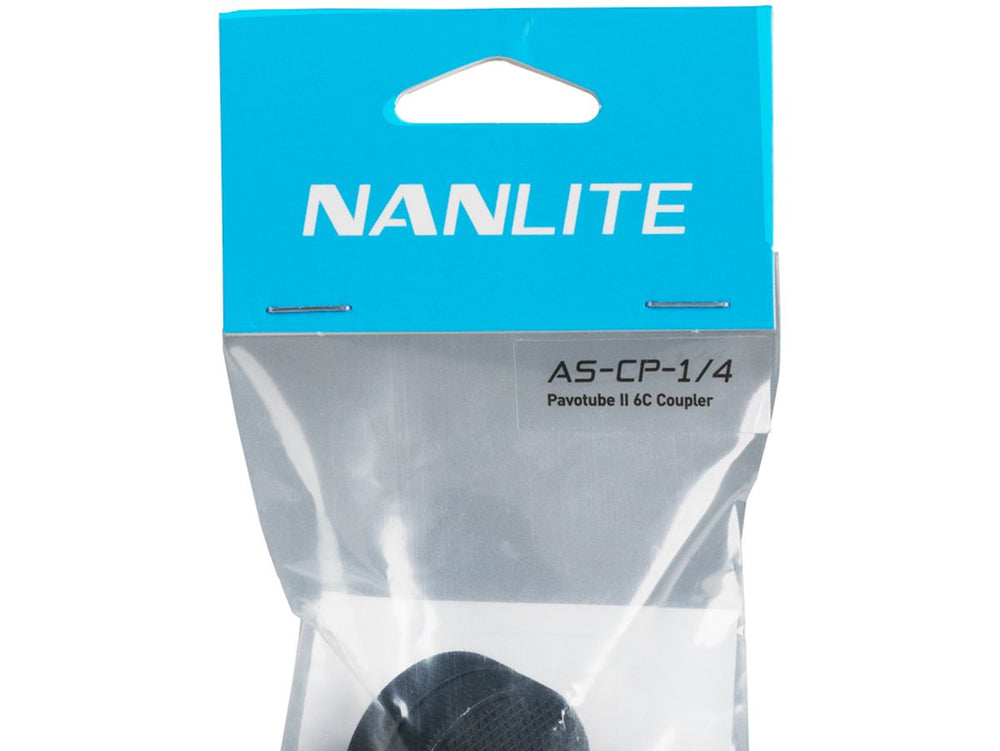 When you open the package, you will find the Nanlite Coupler 1/4" that fits perfectly with Pavotube 6CII