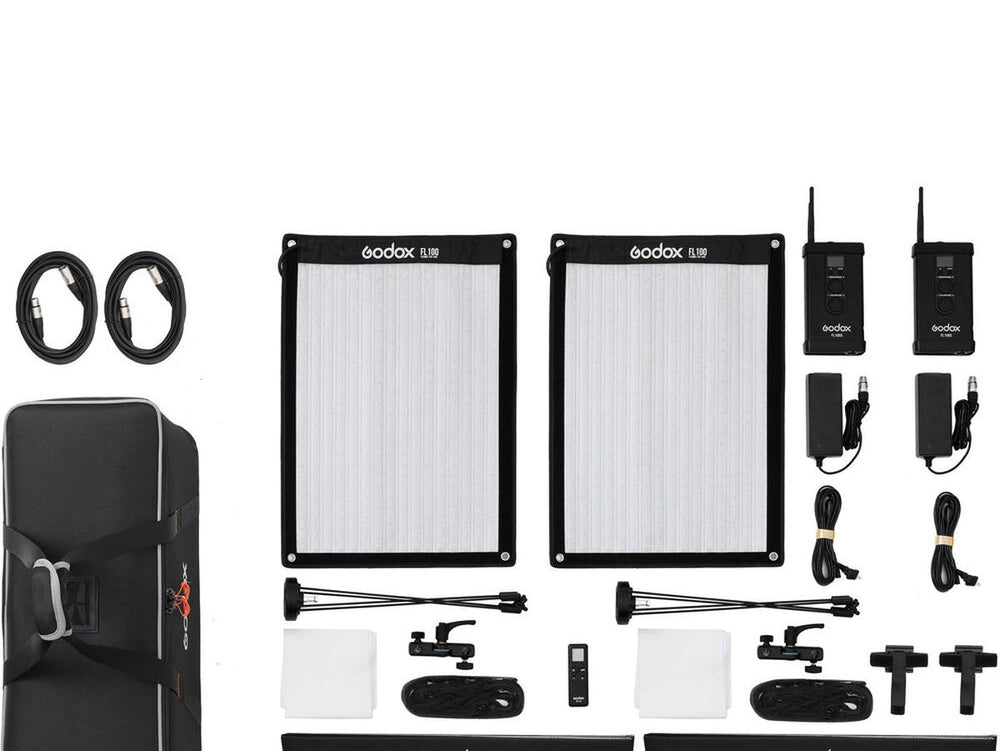 - The kit offers more than just the two FL100 flexible panels; it comes with specialized softboxes and grids, a carrying case, and accessory items. It's a comprehensive lighting set perfect for both photography and videography.