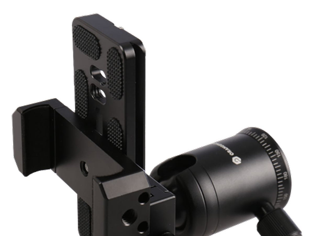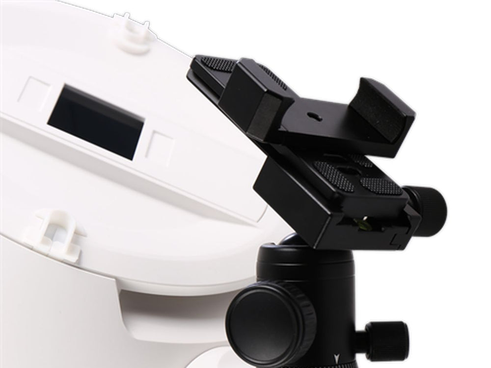 Embedded at the bottom of the devise is a 5/8" screw, which fit perfectly into the Smart Dome thanks to the 1/4" adapter. The quick-release plate is designed for easy attachment and detachment of the smartphone, sparing you the need to remove your smartphone from the clamp during this routine process. The metal smartphone clamp ensures your device is firmly held in place.
