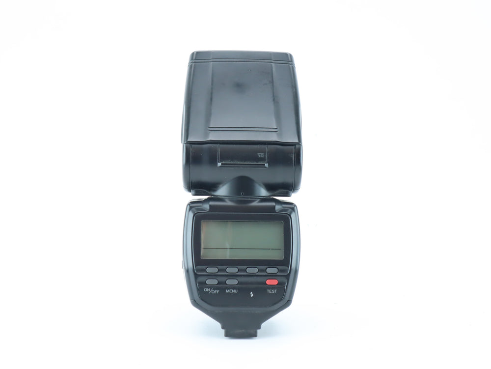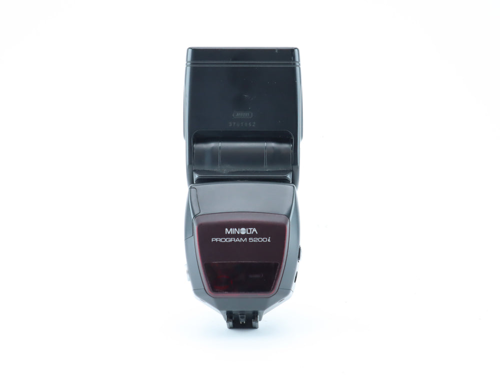 The Minolta Program Flash 5200i is a powerful and intelligent TTL flash unit designed for use with Minolta Dynax (AF) and Maxxum series film cameras that support the iISO hot shoe. It was part of Minolta’s advanced flash system in the late 1980s and early 1990s, offering advanced features like auto zoom, bounce flash, and wireless slave operation—ahead of its time for flash photography.
