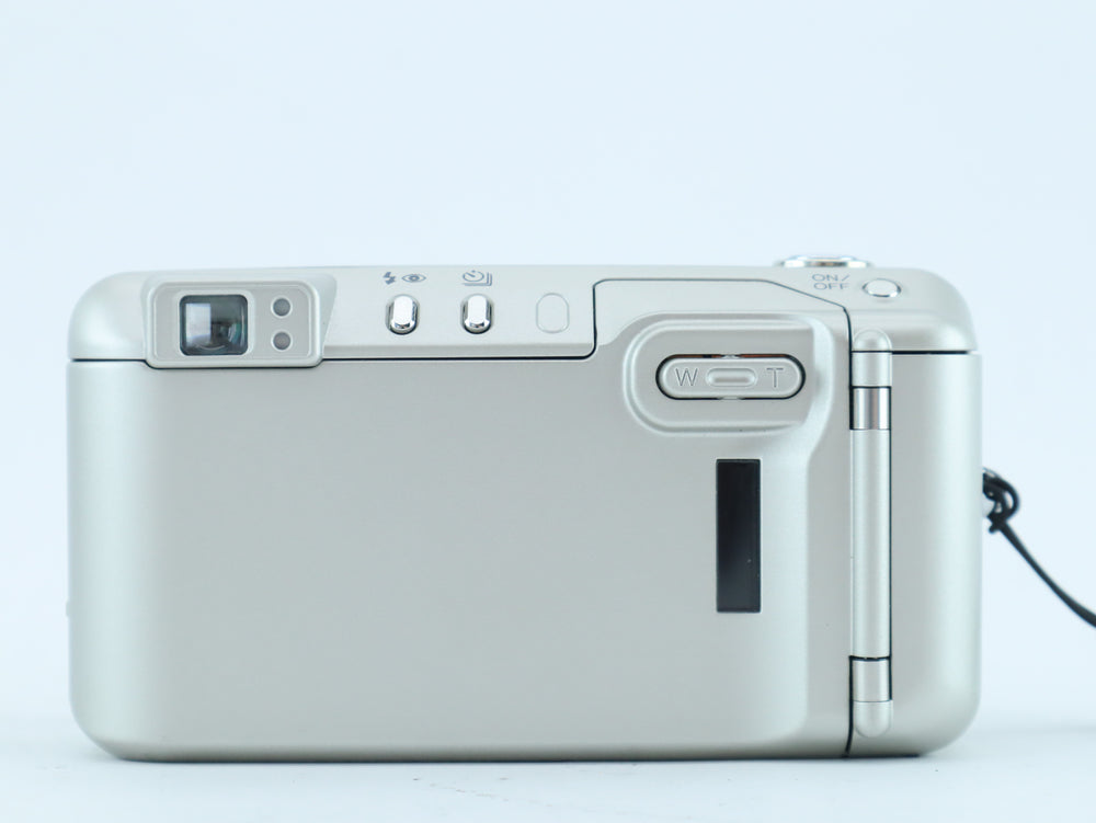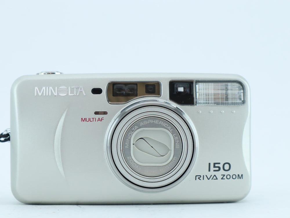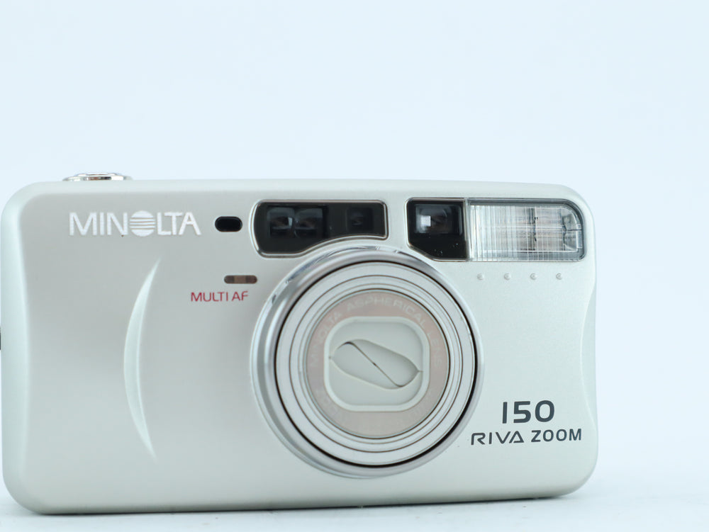 The Minolta Riva Zoom 150 is a premium compact 35mm point-and-shoot film camera, equipped with a powerful 37.5–150mm zoom lens. Designed for photographers who want flexibility without complexity, it offers autofocus, automatic exposure, and a built-in flash with red-eye reduction — all packed into a sleek, portable body.