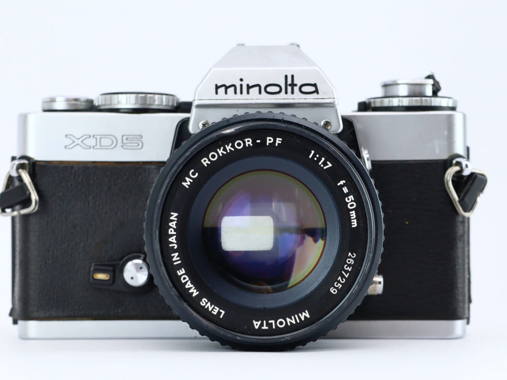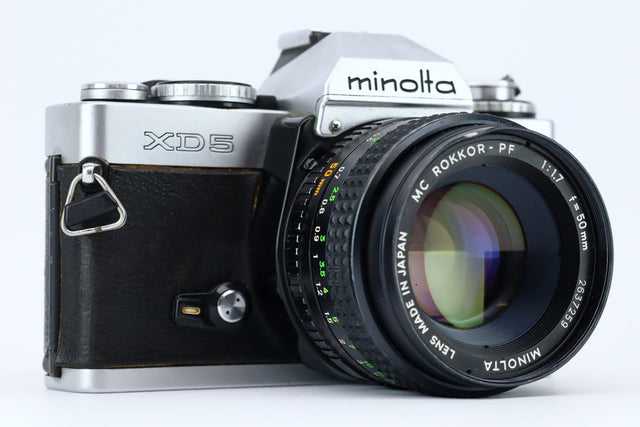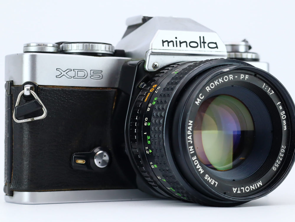 Die Minolta XD5 war die günstigere Version der Kameras der XD-Serie. Manche Leute sagen, dass es mehrere Kunststoffteile hat, die einfach wie Metallteile aussehen. Es hat das gleiche äußere Erscheinungsbild wie das XD7, mit Ausnahme des fehlenden Sucher-Okularverschlusshebels. Beide Modelle bieten die Wahl zwischen zwei automatischen Belichtungsmodi: bevorzugte Verschlusszeit oder bevorzugte Blende. Im Modus „Bevorzugter Verschluss“ wird anstelle der Verschlusszeitskala des Messgeräts eine Blendenskala im Sucher angezeigt. Die XD5 zeigt jedoch nicht zusätzlich zu dieser Skala die tatsächlich ausgewählte Geschwindigkeit und ausgewählte Blende an, wie dies bei der XD7 der Fall ist. Für neue Voreinstellungen von Verschlusszeit oder Blende kann der XD7-Nutzer den Blick auf den Sucher richten.