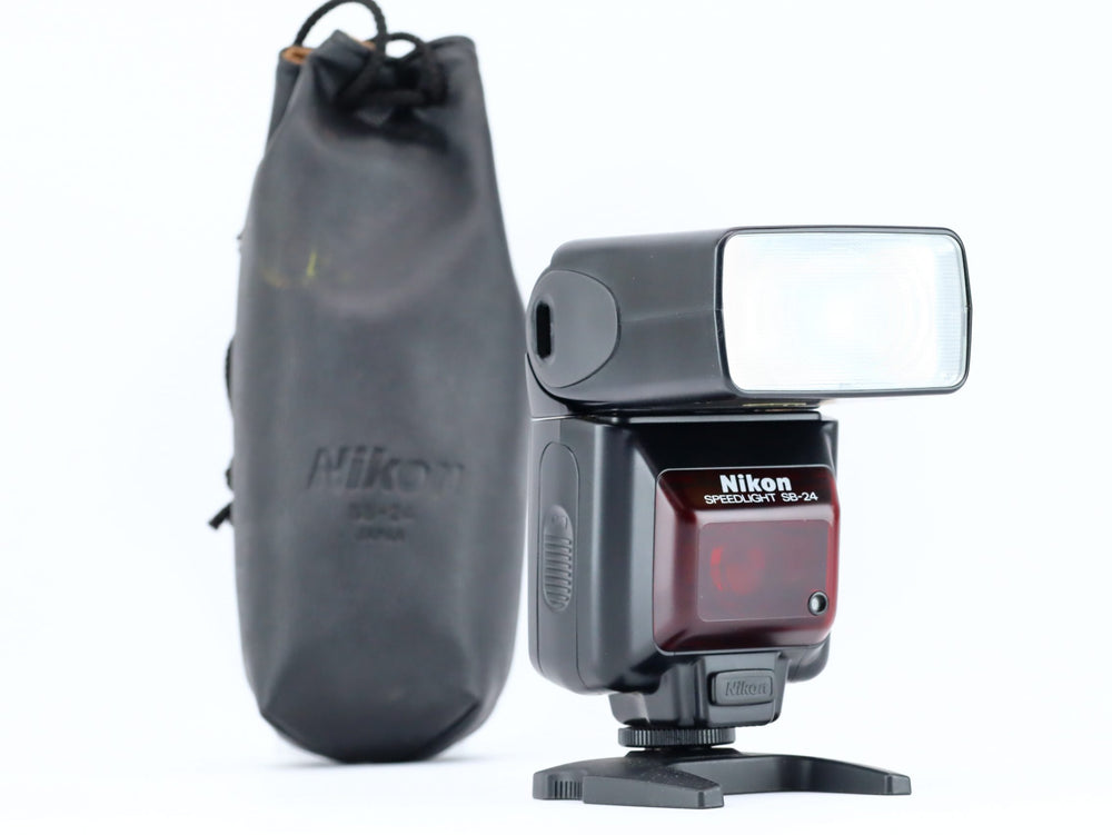 Ausgezeichnetes Nikon-Blitzgerät SB-24. Getestet und funktionsfähig und wird in einer Nikon SS-24-Schutzhülle geliefert. Das Blitzgerät ist in gutem Zustand.
