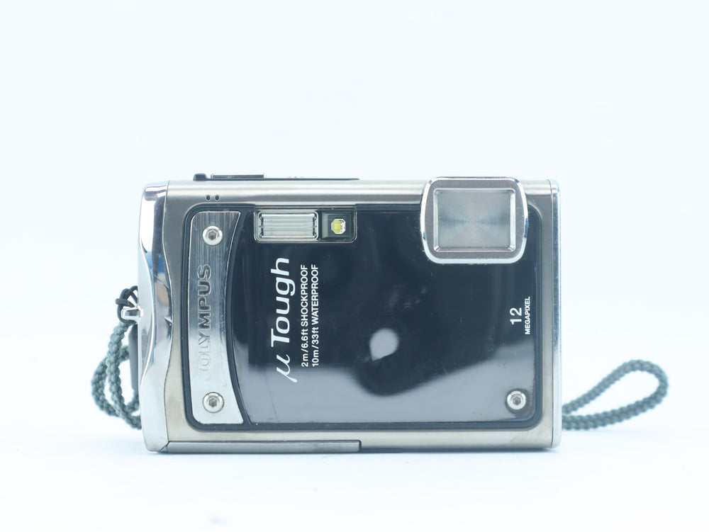 The Olympus µ Tough (also known as the Stylus Tough) is a durable digital compact camera built to withstand the elements. With its rugged waterproof and shockproof design, it’s perfect for outdoor adventures, travel, and underwater photography. Featuring a 12-megapixel sensor, wide-angle zoom lens, and intuitive controls, it delivers reliable performance whether you’re on land, in the pool, or exploring the sea.