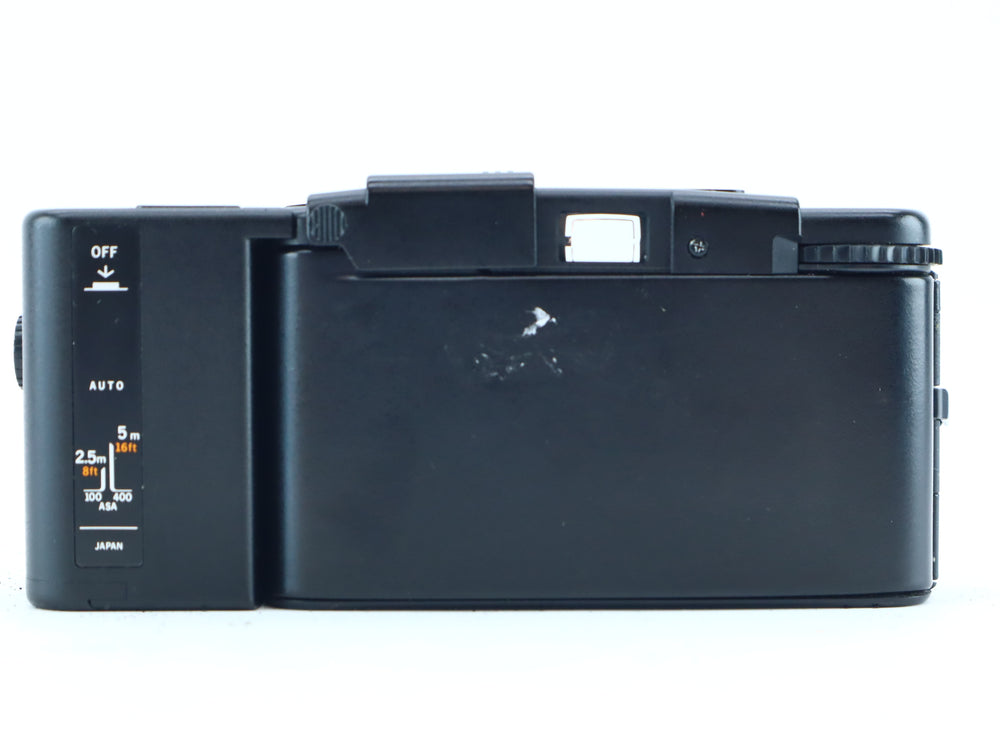 Used – Good condition. Camera shows minor signs of use. Lens is clean and free from fungus or haze. Shutter, exposure meter, and zone focus selector are fully functional. Battery compartment is clean. Film transport tested and working properly.