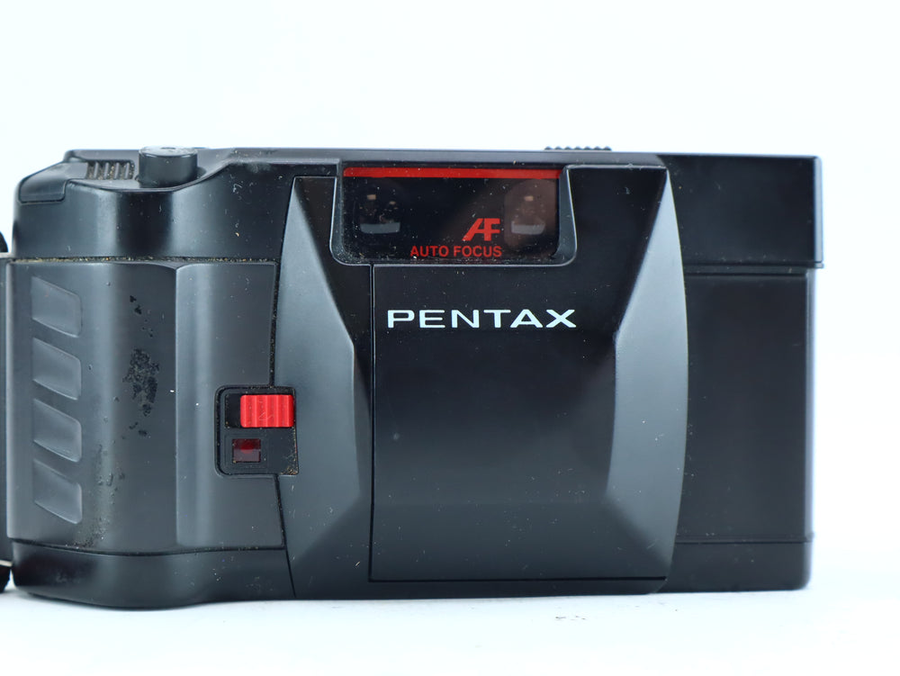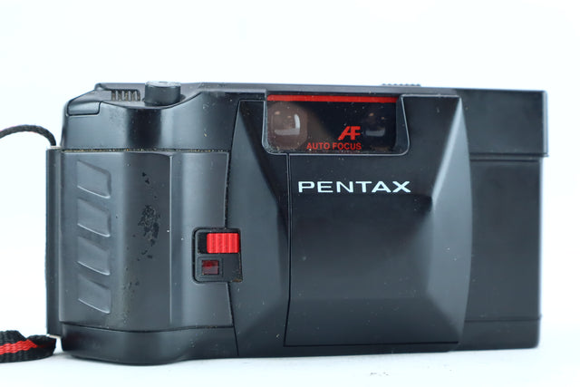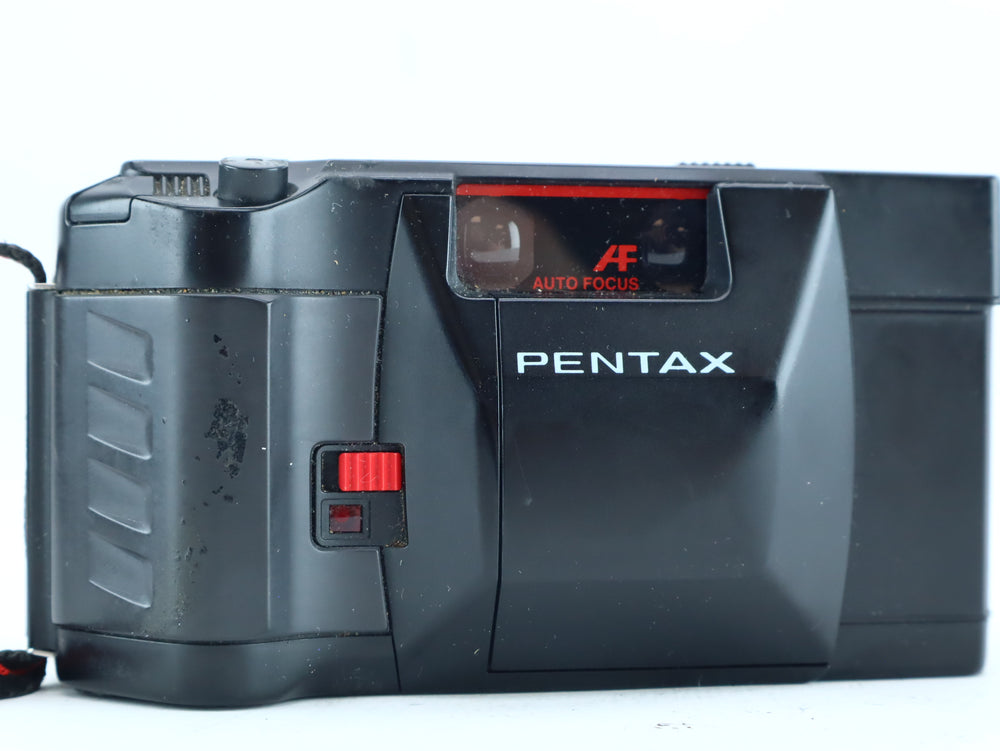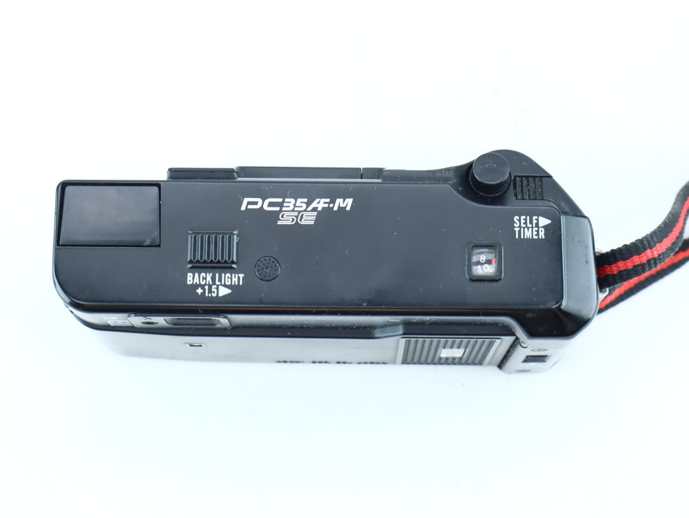 The Pentax PC35 AF-M SE is a well-regarded 35mm compact film camera from the 1980s, known for its sharp Pentax 35mm f/2.8 lens, reliable autofocus, and built-in motor drive for film advance and rewind. The SE (Self-Electronic)version also includes a self-timer and date imprinting features.