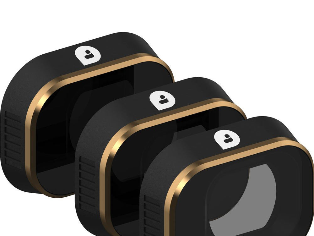 The PolarPro filter set, specifically designed for DJI Mini 3 Pro, comes with the Shutter ND8, ND16 and ND31 filters. The function of these filters is to reduce the amount of light that strikes your camera's sensor which heightens the quality of the image produced. This allows you greater flexibility in playing around with the shutter speed of your camera while minimizing the possibility of your images becoming over or underexposed.