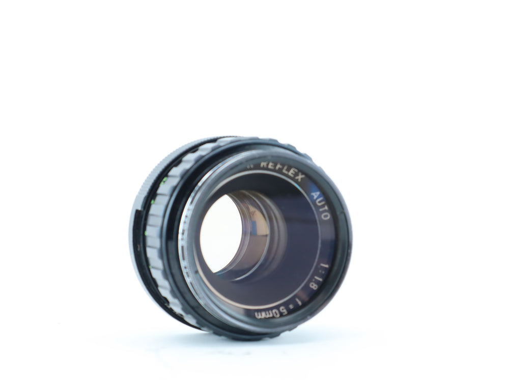 The Reflex Auto 50mm f/1.8 is a classic fast prime lens with an M42 screw mount, ideal for portraits, low-light photography, or adapting to digital systems. It delivers pleasant bokeh and solid sharpness wide open. A UV filter is included for extra protection.