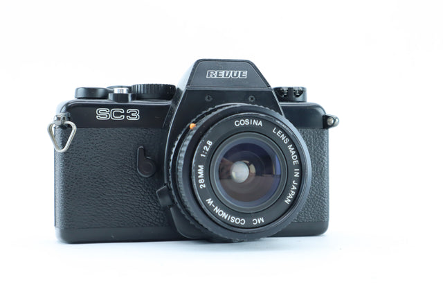 The Revue SC3 is a compact and easy-to-use 35mm film camera, manufactured by Cosina and sold under the Revue brand. It comes equipped with a Cosina W 28mm f/2.8 wide-angle lens, offering sharp, vibrant results in a lightweight and pocketable design. Ideal for travel, street photography, or beginners wanting to experience film, this camera delivers simplicity without sacrificing quality.