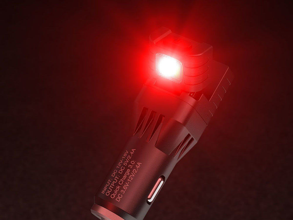The versatile Nitecore VCL10 is a car tool combined with a USB charger, a safety hammer, an emergency light and a flashlight. Featuring QC 2.0 and 3.0 USB charger, it can supply a high-power output of 2.4A. Meaning rapid phone charging is within your grasp. On safety enhancement, it includes a Tungsten steel pin, sharp and extremely hard for emergencies to shatter car windows. The inbuilt Li-ion battery powers a white LED lamp, offering powerful illumination up to 25 Lumens for three hours, and a red emergency light that lasts up to 20 hours.