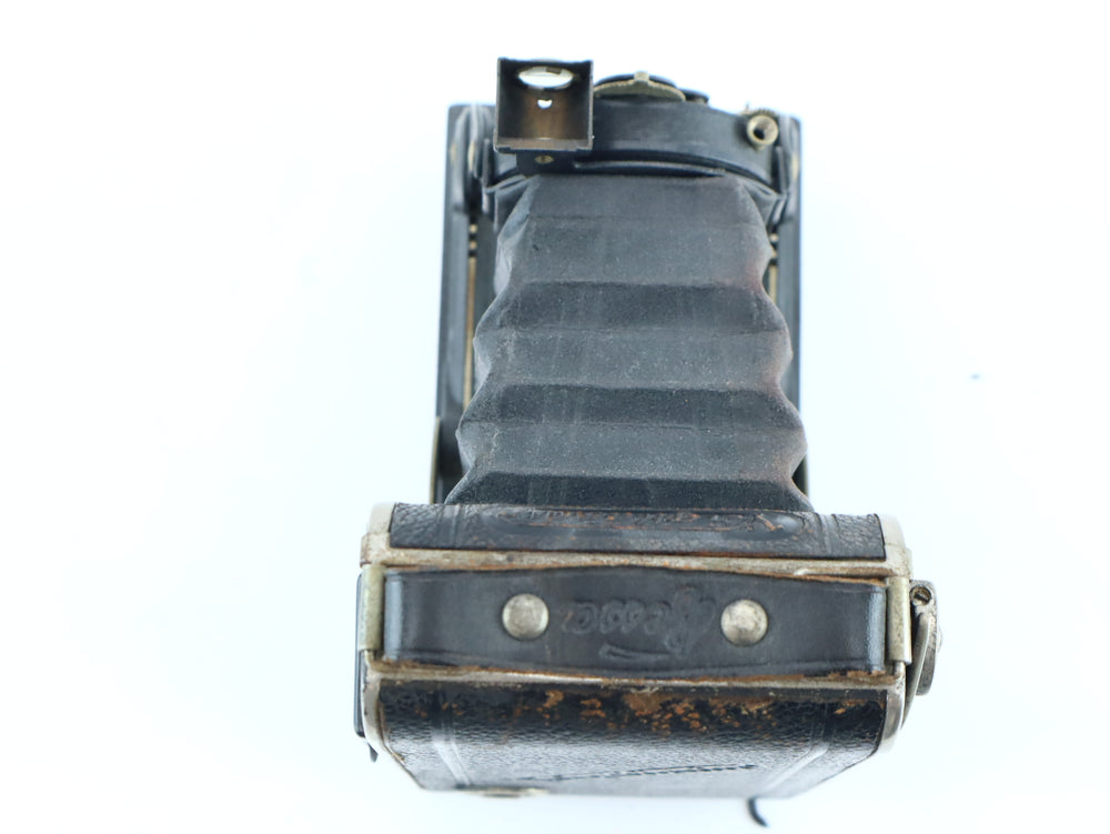 This classic Voigtländer folding camera was manufactured in Braunschweig, Germany, and features a Voigtar Anastigmat 1:6.3 lens—well known for its soft, vintage rendering. Built in the early 20th century, this camera combines beautiful craftsmanship with historical significance. Designed for roll film or plates (depending on the model), it's a true collector’s item and a lovely example of German optical engineering.