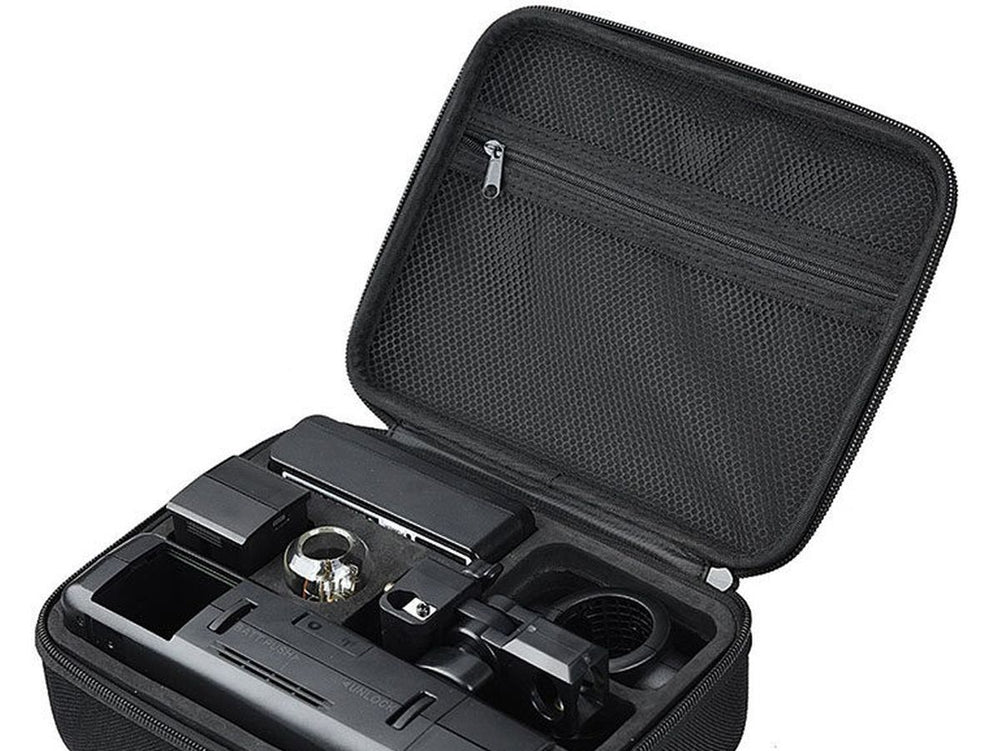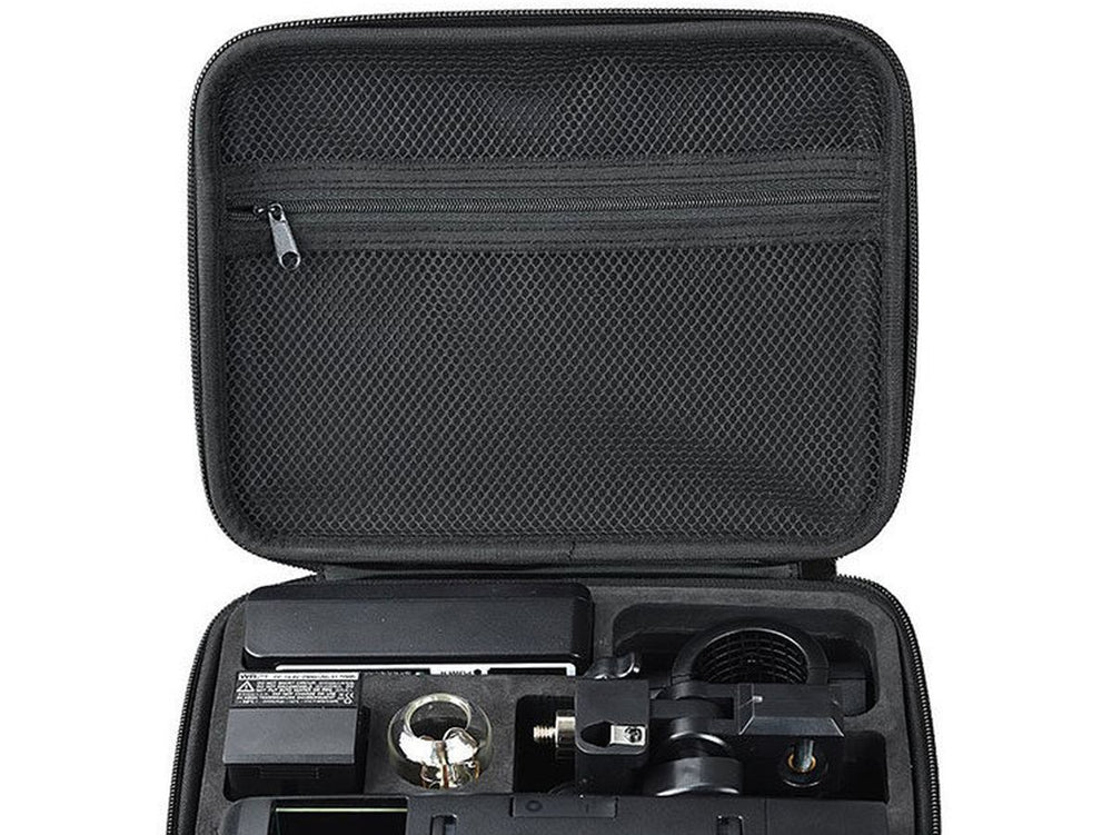 The Hard Case features easy access provided by a zipper, along with a convenient handle for seamless portability. Beyond the dedicated compartments for the AD200 and its accessories, there is an additional zipped pocket on the inside where you can store smaller add-ons and necessities.