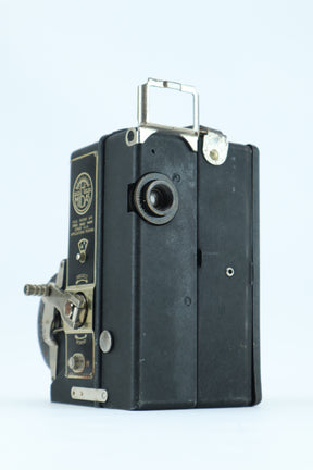 • Formato de película: Utiliza película de 9,5 mm, un formato que se hizo popular a principios del siglo XX por su tamaño compacto y facilidad de uso, lo que lo hace adecuado tanto para aficionados como para profesionales.