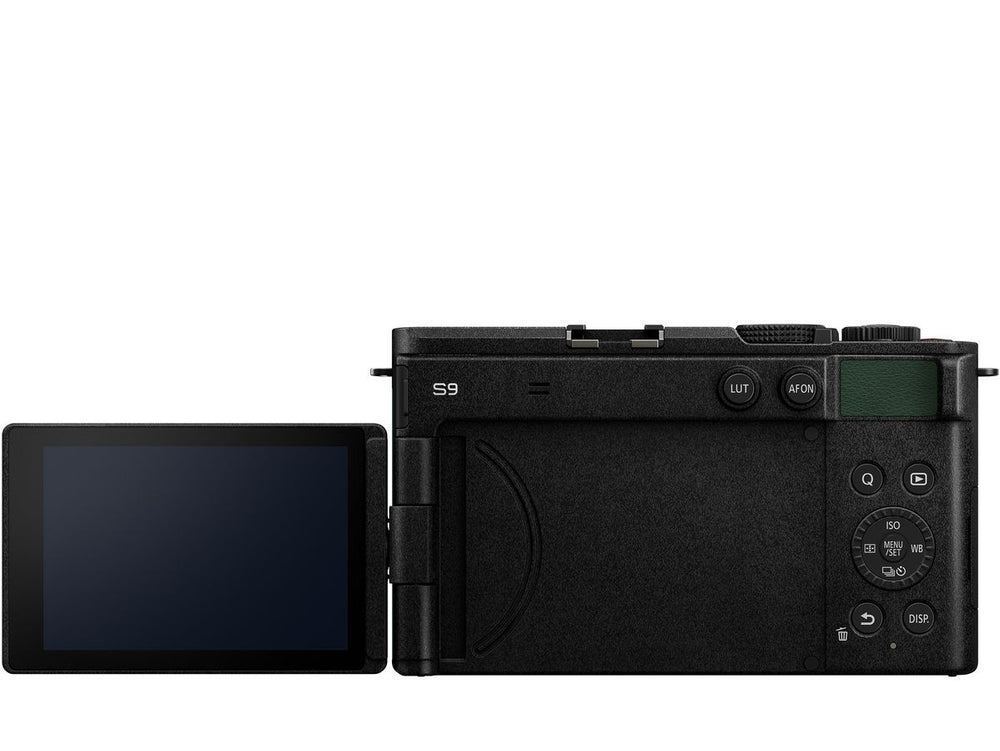 - Package includes the Panasonic LUMIX S9 Dark Olive, Body cap, Shoecover, Shoulder strap, Battery