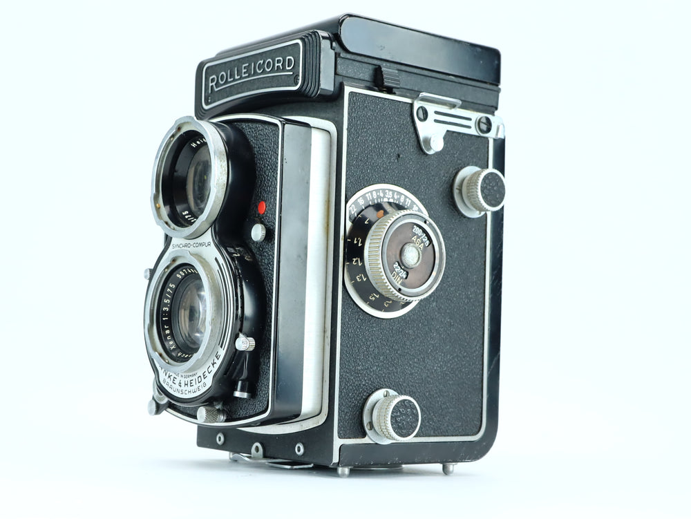 El Rolleicord Vb, número de serie 2639023, es un clásico Cámara TLR de formato medio 6×6 producido por Franke & Heidecke en Alemania entre 1962 y 1976. Cuenta con una Objetivo Rodenstock o Schneider de 75 mm, un brillante visor a la altura de la cintura, y un diseño simple y confiable Eso es perfecto tanto para aficionados como para coleccionistas. Vb es la versión final y más avanzada de la línea Rolleicord, que ofrece pantallas de enfoque intercambiables y un capucha desmontable, similar a los modelos Rolleiflex de gama alta.