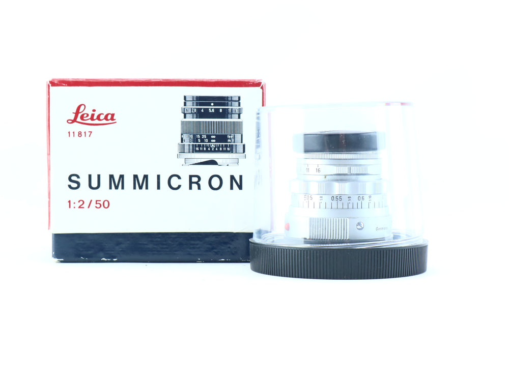 The Leica Summicron 50mm f/2 (Model 11817), specifically this "Rigid" version, is a masterfully engineered prime lens cited as a pinnacle of 35mm optical design. Featuring an iconic 7-element formula, it is celebrated for its surgical sharpness, high micro-contrast, and a distinct "3D" rendering. With its robust, all-metal chrome construction and a tactile, weighted focus throw, the Summicron 11817 provides the mechanical soul and optical brilliance that defined the Leica M-system as a global industry standard.