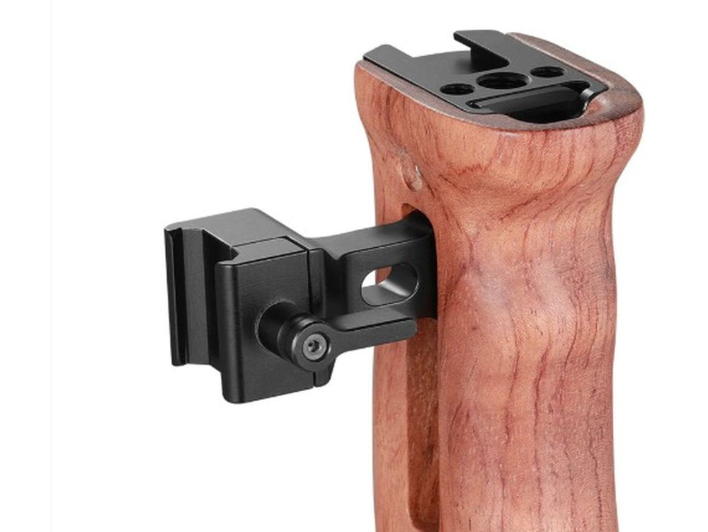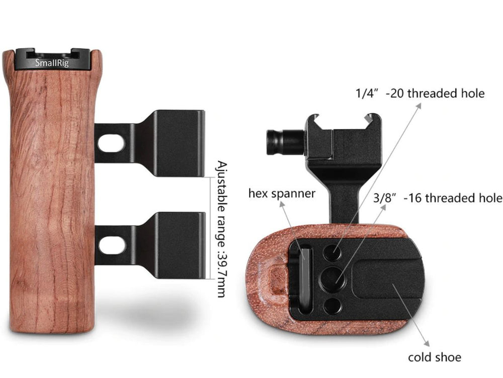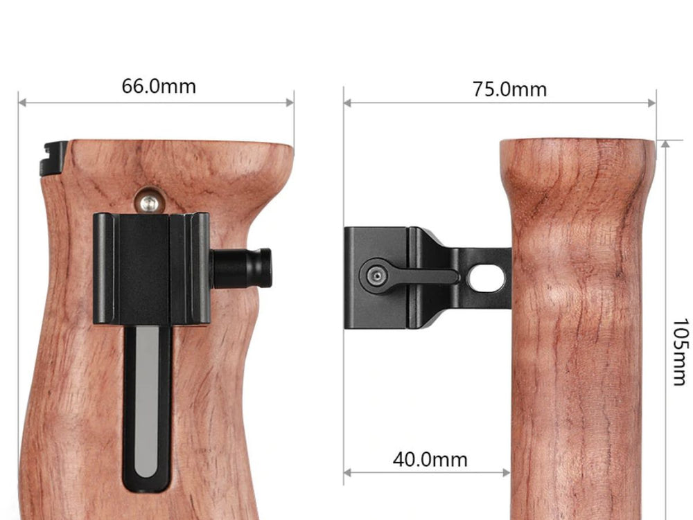 The SmallRig 2187 is designed to enhance your filming and photography experience by providing superior comfort and grip. Constructed from high-quality wood, this handle is compatible with any cage equipped with a NATO rail on the side. One of its standout features is its adjustable height, allowing you to customize your hold depending on your shooting style, and it can be mounted on either the left or right side of your setup.