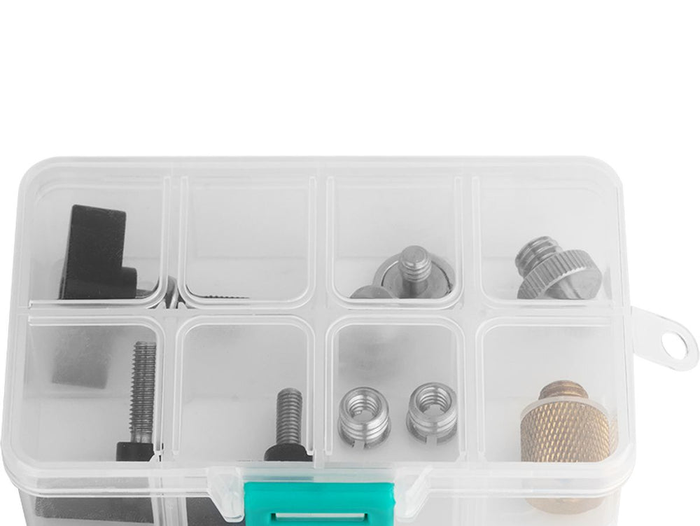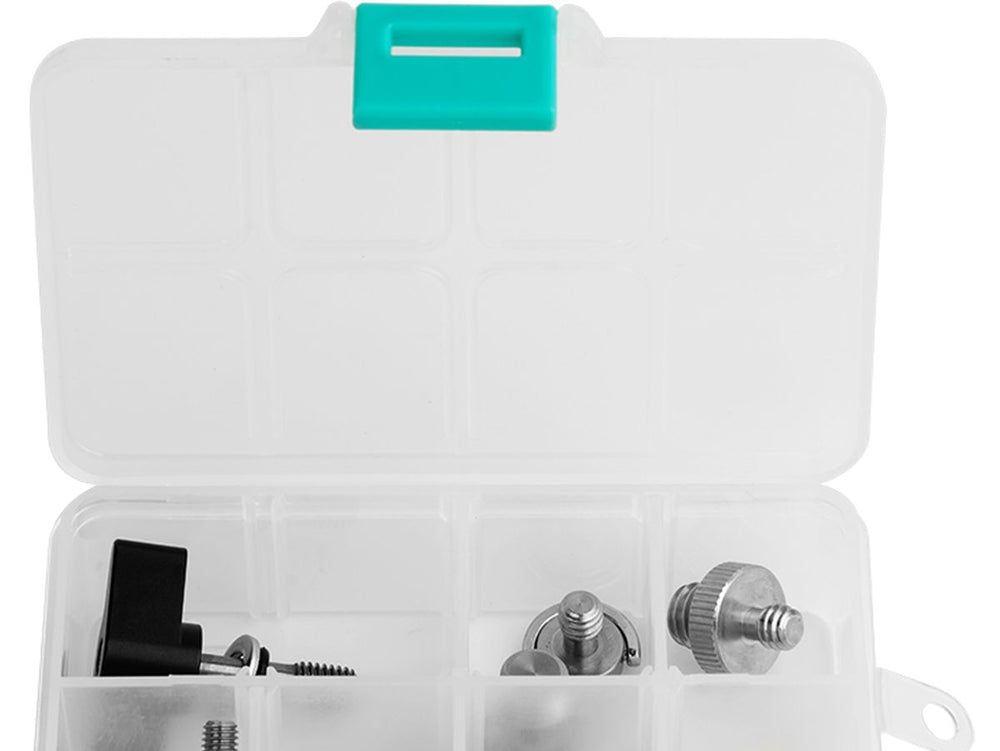 The SmallRig 3995 Ratchet Wingnut Set is a convenient storage solution for SmallRig photography accessories. This set comes equipped with a toolbox packed with different types of screws to fit all your needs: from a 1/4" D ring screw and a 3/8" D ring screw, through to an M6 screw, a pair of M5 screws, a pair of 3/8" - 1/4" thread adapters, a 3/8" - 1/4" screw adapter, to a 1/4" - 3/8" double head bolt.