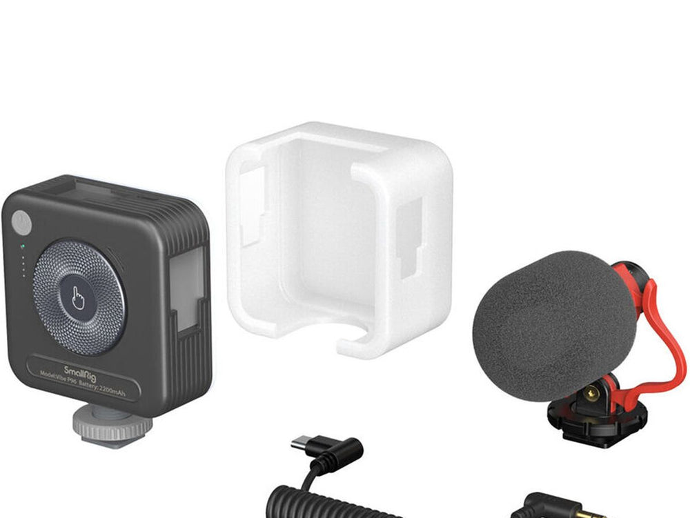 - Equipped with a shotgun microphone with a 3.5 mm to Type-C cable, offers an unstoppable vlogging experience (also includes a Type-C to Lightning adapter)