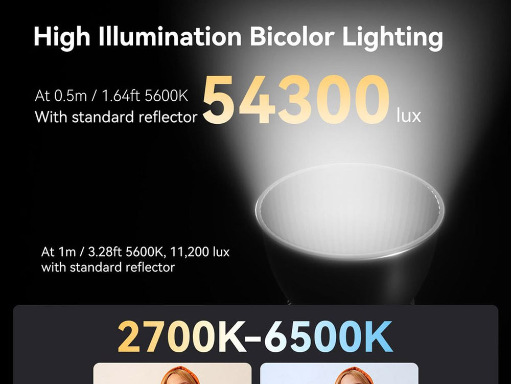 The precision of colour rendering by the RC 60B is noteworthy. With a colour temperature range of 2700K-6500K and a CRI of 97+, TLCI of 98+ and SSI average of 89, you can expect outstanding colour accuracy. The light output of 2670 lux (bare light source at 1m/5600K) and 11200Lux (with hyperreflector at 1m/5600K) further enhances the performance. Plus, you can quickly adjust the settings viewable on its 1.3 inch LED screen.