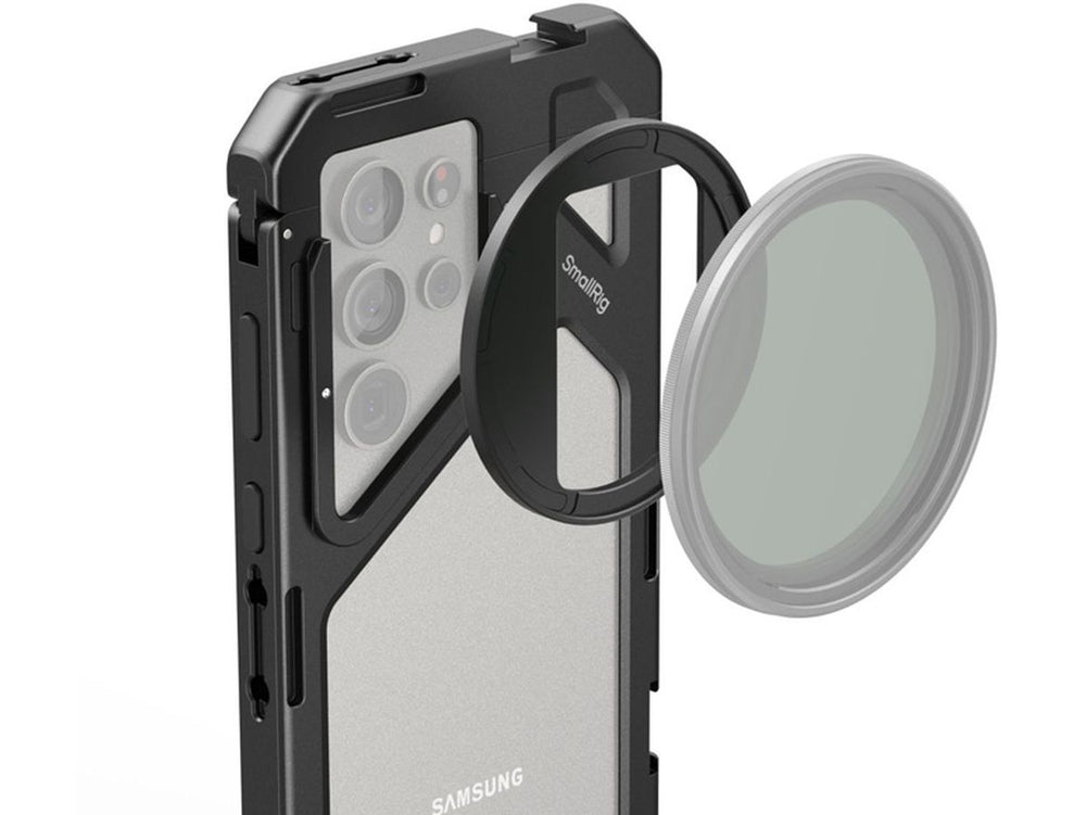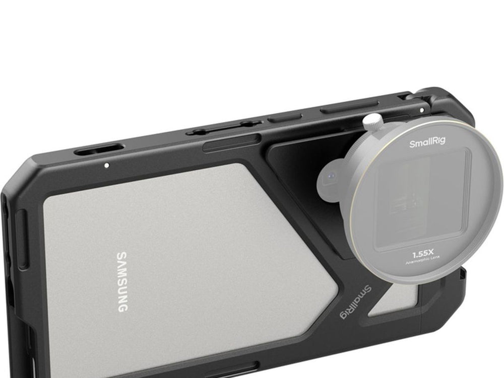 It flawlessly enables you to add filters using the 67mm magnetic rear plate. The cage supports T-mount and 17 mm threaded mount lenses, extending your creative possibilities. The meticulously crafted design with cutouts enables easy access to the S Pen feature.