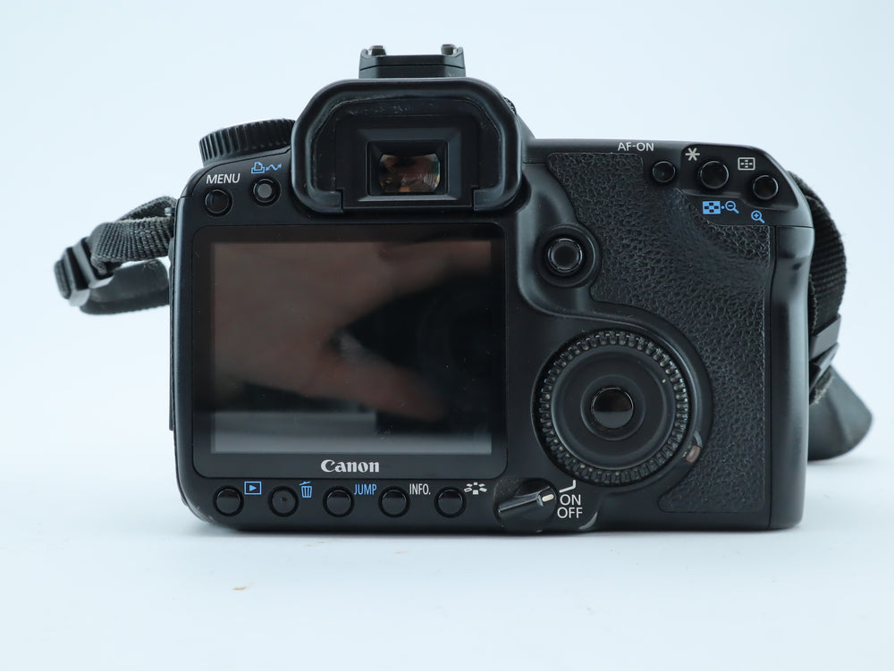 This camera shows light cosmetic wear from regular use. All buttons and dials function properly. The sensor is clean, and the shutter operates smoothly. LCD is bright and clear. Battery and card door locks are intact. Perfectly usable as a backup DSLR or entry into Canon’s EF system.