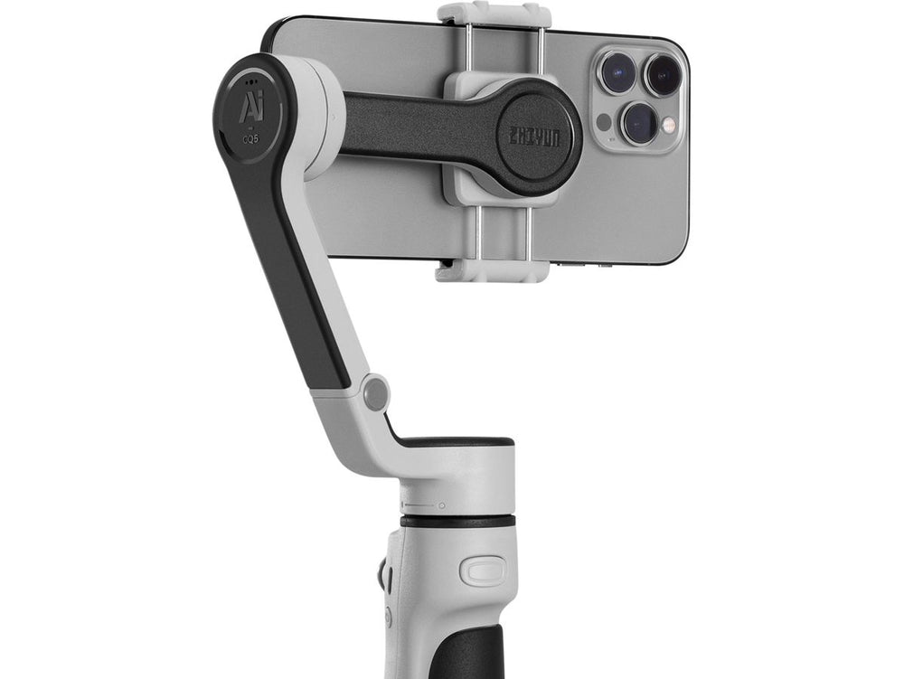 Introducing the Zhiyun CINEPEER CQ5, your top pick for an affordable, compact, and foldable stabilizer. This little device is designed to accommodate smartphones up to 280 grams, offering features such as built-in extension rod, voice control capability, and AI-tracking.