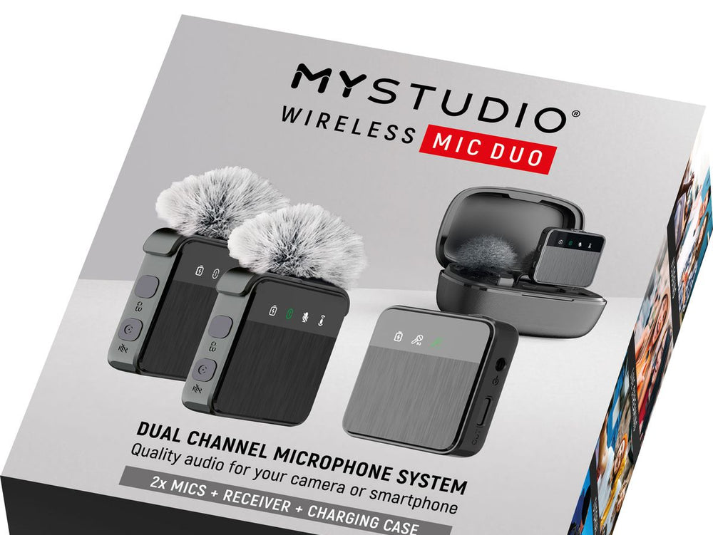 Introducing the Easypix Wireless DUO Microphone, a compact and ultra-portable set that includes two microphones, a dual-channel receiver, and a charging case. Designed to seamlessly integrate with various media devices – from cameras to smartphones, tablets, and computers, this set delivers top-notch sound recordings that bring professionalism to your content.