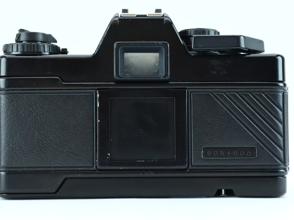 Camera (SN: 9081800) and lens are in good working order. Shutter fires accurately, and the LED meter responds to light. Lens is clean — no haze, fungus, or scratches. Focus and aperture rings operate smoothly. Minor cosmetic wear from normal use.