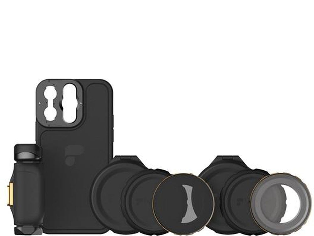 This professional filmmaking system by PolarPro includes various products designed specifically for photography and filming with your iPhone. To use the specialized LiteChaser filters, you'll need the LiteChaser Pro Case, possibly along with the grip.
