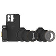 The PolarPro LiteChaser Filmmaking Kit for iPhone 13 Pro Max is a comprehensive mobile cinema setup. It enables the creation of breath-taking cinematic visuals with your smartphone. The kit includes features like a protective case with an accompanying grip, CPOL filter, and a variable ND filter (3-5 stops) with a lens cap.