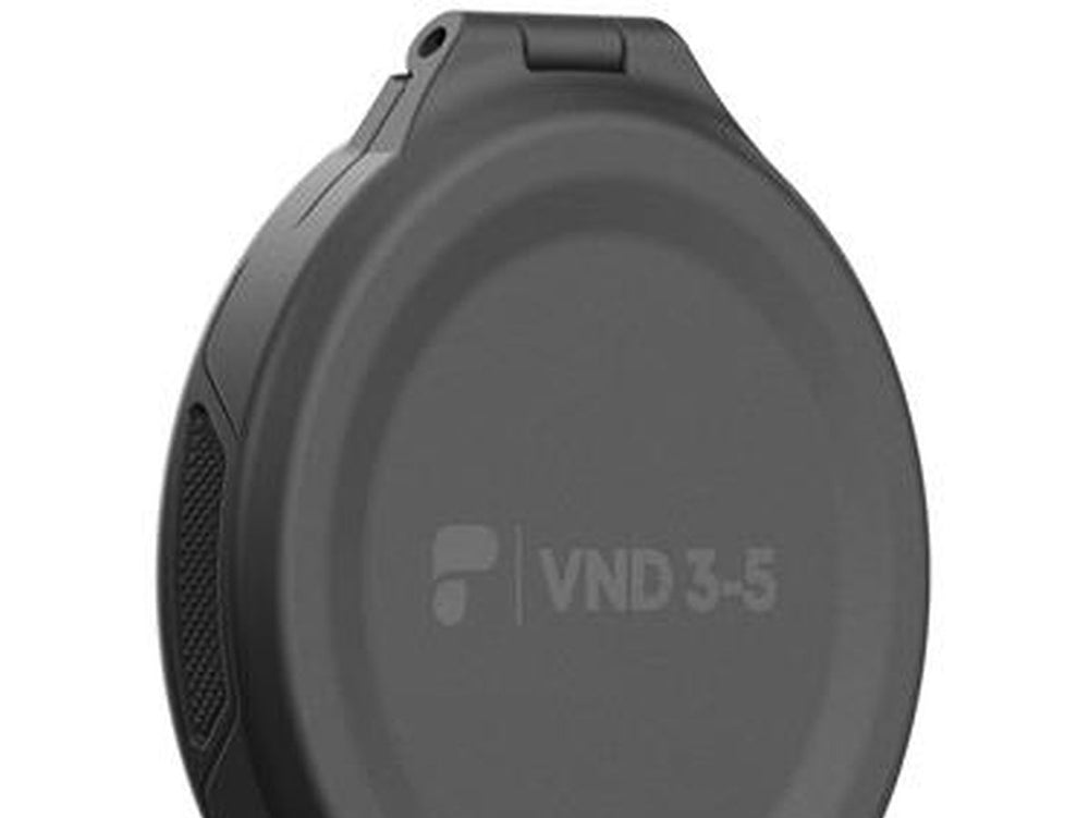 The LiteChaser Pro VND filter regulates 3 to 5 stops of light, allowing the framerate and/or shutter speed to be adjusted as per the ambient lighting conditions. This dual-part filter, comprised of CinemaSeries glass, can be adjusted to manipulate the amount of light striking the lens. The filter's gold-coloured aluminium mount includes an f-stops indicator, enabling precise measurement of light blocked by the filter. Its quick-release mount fits seamlessly with the LiteChaser Pro Case for the iPhone 13, ensuring a stable attachment.