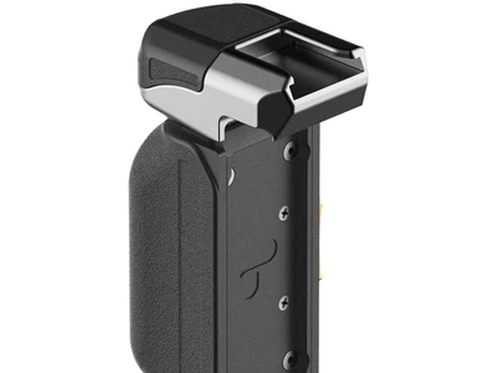 Particularly compatible with the iPhone 14 Pro LiteChaser Pro Case, the PolarPro LiteChaser Pro Grip offers the possibility for easy placement of accessories. Thanks to the integration of a cold shoe mount and a 1/4"-20 attachment, you can effortlessly fasten components such as microphones and lamps to your setup.