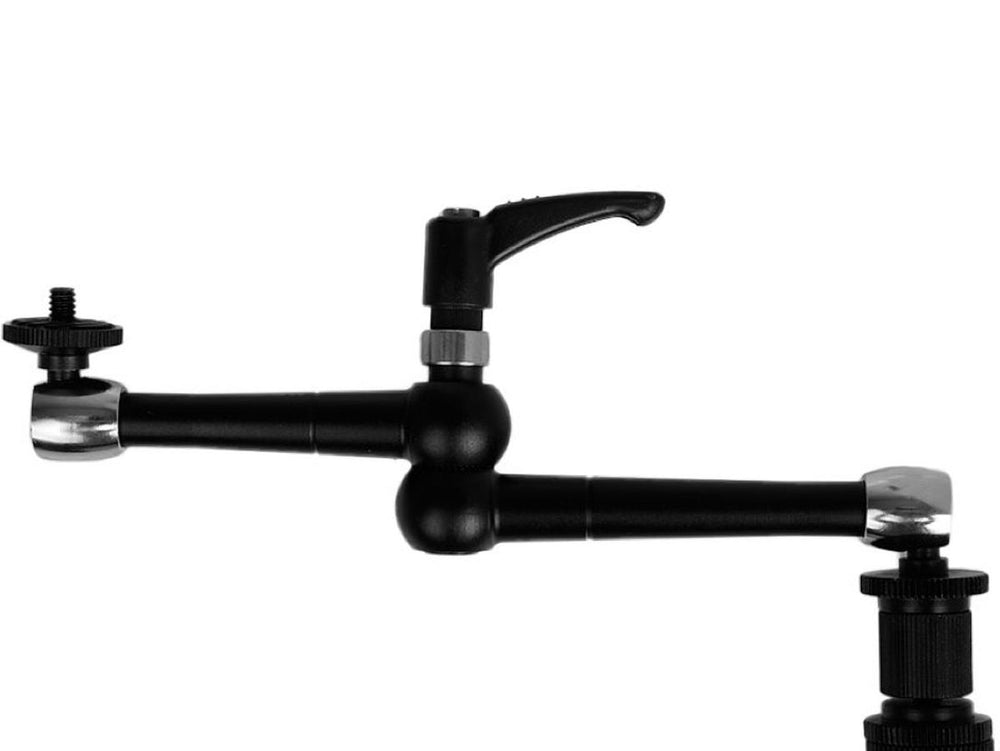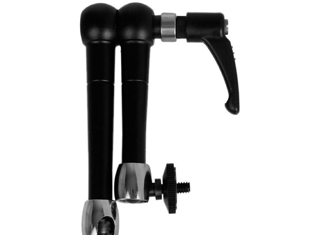 The Caruba 11 Inch Magic Arm with adjustment knob is a versatile accessory arm measuring 28 centimeters in length. It features two 1/4-20" attachment points on either end, making it easy to connect various accessories. A 1/4" to hotshoe adapter is included for added convenience. This design allows for a flexible use, accommodating both the arms and the heads with ease.
