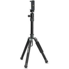 - It incorporates tripod legs and a mid-column constructed from anodized aluminum tube.
